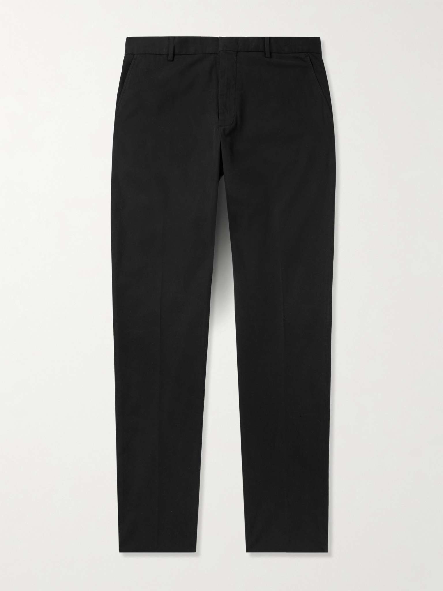 ZEGNA's trousers are tailored from black cotton-twill with a little added stretch for flexibility. They're cut for a straight-leg fit and work well with sweaters or shirting at the office. Size & Fit - Fits true to size. Take your normal size - Regular-straight leg, mid-rise style - Unfinished hems; alter to fit - Mid-weight, slightly stretchy fabric - Model is shown wearing an IT 48 - Model measures: waist size 32, height 6'2"/ 188cm Details & Care - Black stretch-cotton twill - Button, hook and zip fastening - 97% cotton, 3% elastane - Machine wash