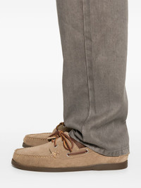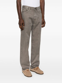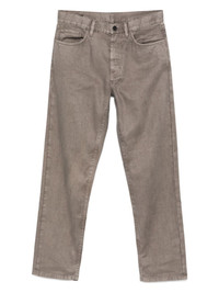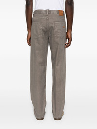 straight-leg jeans Highlights - Taupe grey - Concealed fly and button fastening - Belt loops - Classic five pockets - Applique logo Made in Italy Composition Outer: Cotton 51%, Linen/Flax 47%, Elastane 2% Lining: Cotton 100% SIZE & FIT Model measurements Height 6 ft 0 in(1.84 m) Bust/Chest 35.82 in(91 cm) Hips 37 in(94 cm) Waist 28.34 in(72 cm) FittingInformation Designed for a straight-leg, allowing for an unrestricted and comfortable fit over the leg Made from a midweight stretch fabric, this piece offers elasticity and flexibility when worn Washing instructions Machine Wash