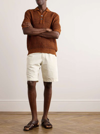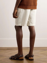 Straight-Leg Pleated Cotton and Linen-Blend Twill Shorts