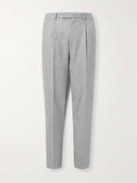 You can discern the quality of ZEGNA's clothing by touch alone - the label works with premium fibres sourced for their softness and strength. These trousers have been cut in Italy from lightweight wool-flannel and are tailored with classic front pleats for a roomier fit. Size & Fit - Fits true to size. Take your normal size - Relaxed-straight leg, mid-rise style - Lightweight, non-stretchy fabric - Model is shown wearing an IT 48 - Model measures: waist size 32, height 6'2"/ 188cm Details & Care - Light-grey mélange wool-flannel - Button and zip fastening - 100% wool; buttons: 100% horn (Buffalo); lining: 100% viscose - Dry clean