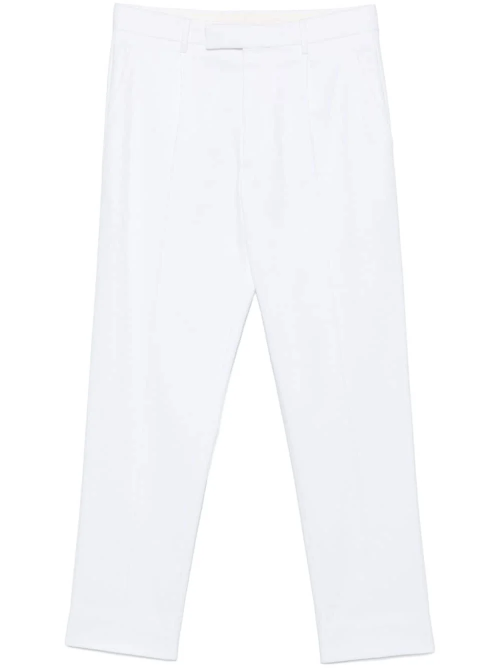 straight-leg trousers Highlights - White - Stretch-cotton - Twill weave - Straight leg - Concealed fly and button fastening - Belt loops - Two diagonal pockets to the sides - Two rear welt pockets - Pressed crease Imported Composition Outer: Cotton 98%, Elastane 2% Lining: Cotton 100% SIZE & FIT Model measurements Height 6 ft 2 in(1.87 m) Bust/Chest 37.79 in(96 cm) Hips 37.79 in(96 cm) Waist 30.31 in(77 cm) FittingInformation Designed for a straight-leg, allowing for an unrestricted and comfortable fit over the leg Made from a midweight stretch fabric, this piece offers elasticity and flexibility when worn
