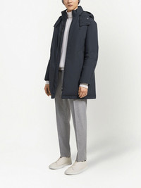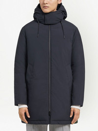 Stratos Technical padded parka navy blue padded design funnel neck classic hood elasticated waistband front zip fastening long sleeves slip pockets to the sides straight hem Imported Composition Polyester 100%