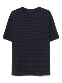 striped T-shirt Highlights - Prussian blue - Short side slits - Crew neck - Short sleeves Imported Composition Cotton 90%, Linen/Flax 10% SIZE & FIT Model measurements Height 6 ft 0 in(1.84 m) Bust/Chest 37.79 in(96 cm) Hips 37 in(94 cm) Waist 31.49 in(80 cm) FittingInformation Designed for a relaxed fit, this piece allows for comfort and movement when worn Made from a midweight non-stretch fabric, this piece offers minimal elasticity when worn