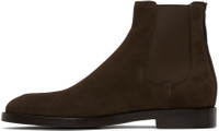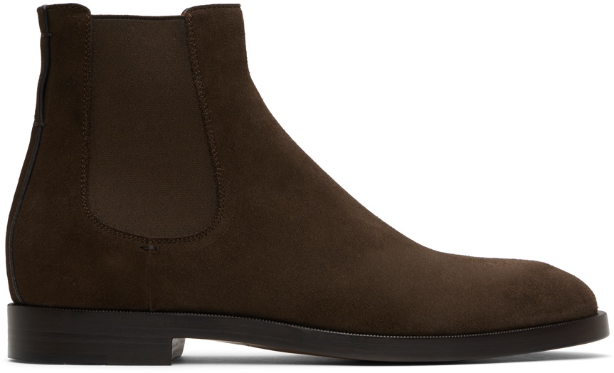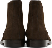 Ankle-high calfskin suede Chelsea boots in brown. · Elasticized gusset at sides · Pull-tab at heel collar · Buffed leather lining · Stacked leather block heel with rubber injection · Leather sole with rubber injection Supplier color: Brown