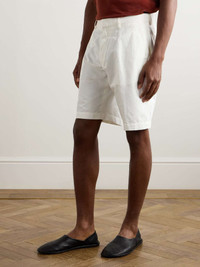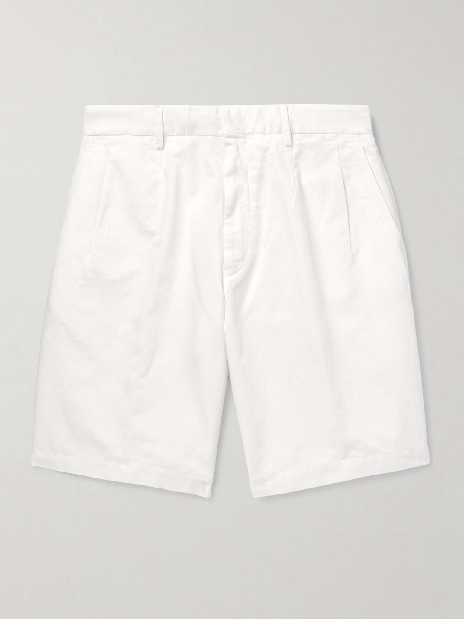 Straight-Leg Pleated Cotton and Linen-Blend Twill Shorts