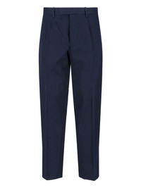 ZEGNA TAILORED PANTS IN NAVY WOOL AND COTTON BLEND WITH MID WAIST, BELT LOOPS, BUTTON, HOOK AND ZIP CLOSURE, FRONT PLEATED DETAIL, TWO BACK POCKETS, STRAIGHT LEG. PRODUCT INFO PRODUCT CODE RUGI04A2 TP45B09R COMPOSITION: 57% COTTON, 43% WOOL SIZE AND FIT: REGULAR FIT MADE IN: ROMANIA