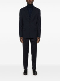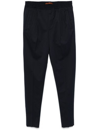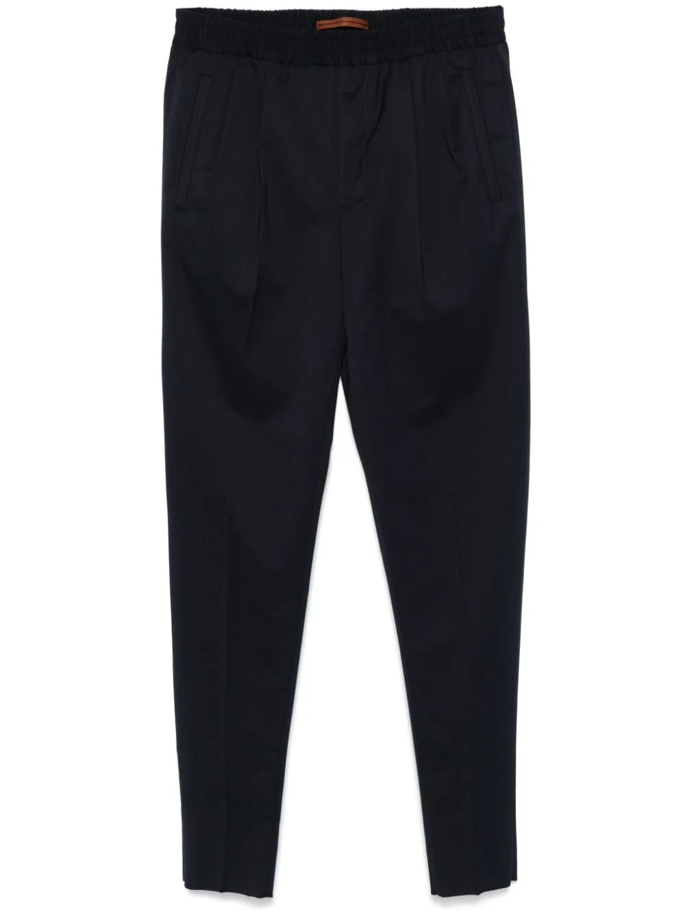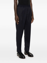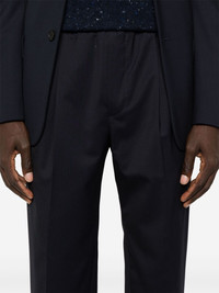 tailored trousers Highlights - Navy blue - Wool blend - Twill weave - Tailored cut - Elasticated waistband with internal drawstring - Pleat detailing - Pressed crease - Two front welt pockets - Two rear welt pockets - Tapered leg Imported Composition Outer: Wool 54%, Polyester 45%, Elastane 1% Lining: Cotton 100% SIZE & FIT Model measurements Height 6 ft 2 in(1.87 m) Bust/Chest 36.41 in(92.5 cm) Hips 37 in(94 cm) Waist 29.52 in(75 cm) FittingInformation Designed for a tapered leg, offering a loose unrestricted fit over the leg with a closer fit towards the ankle Adjust this piece’s waistband to your preference using the drawstring Made from a midweight stretch fabric, this piece offers elasticity and flexibility when worn