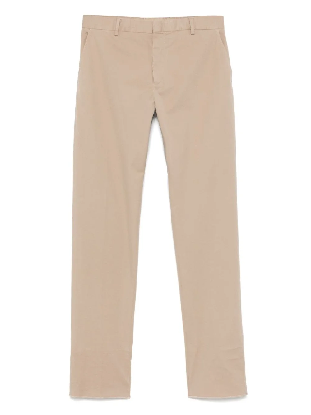 tapered chinos Highlights - Taupe - Concealed front fastening - Belt loops - Two side slit pockets - Two rear button-fastening jetted pockets Imported Composition Outer: Cotton 97% Lining: Cotton 100%, Elastane 3% SIZE & FIT Model measurements Height 6 ft 2 in(1.87 m) Bust/Chest 36.22 in(92 cm) Hips 37 in(94 cm) Waist 27.95 in(71 cm) FittingInformation Designed for a slim tapered leg, offering a close fit that sits just away from the leg with a closer fit towards the ankle The unfinished hems allow for the length to be altered Made from a midweight stretch fabric, this piece offers elasticity and flexibility when worn