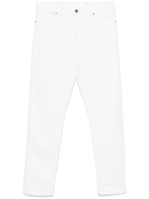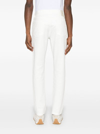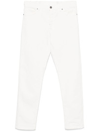 tapered jeans Highlights - White - Concealed fly and button fastening - Belt loops - Classic five pockets - Logo patch to the rear Imported Composition Lining: Cotton 100% Outer: Calf Leather 100%, Cotton 99%, Elastane 1% SIZE & FIT Model measurements Height 6 ft 2 in(1.88 m) Bust/Chest 36.61 in(93 cm) Hips 35.82 in(91 cm) Waist 27.95 in(71 cm) FittingInformation Designed for a slim fit, offering a comfortable fit that sits just away from the leg Made from a midweight stretch fabric, this piece offers elasticity and flexibility when worn Washing instructions Machine Wash