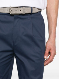 stretch-cotton tapered-leg trousers Highlights - Navy blue - Cotton blend - Stretch-cotton - Twill weave - Concealed fly and button fastening - Belt loops - Two side slash pockets - Two rear jetted pockets - Pressed crease - Tapered leg Made in Italy Composition Outer: Cotton 96%, Elastane 4% Lining: Cotton 100% SIZE & FIT Model measurements Height 6 ft 2 in(1.87 m) Bust/Chest 37.79 in(96 cm) Hips 37.79 in(96 cm) Waist 30.31 in(77 cm) FittingInformation Designed for a tapered leg, offering a loose unrestricted fit over the leg with a closer fit towards the ankle Made from a midweight stretch fabric, this piece offers elasticity and flexibility when worn This piece fits true to size – take your usual size Washing instructions Dry Clean Only