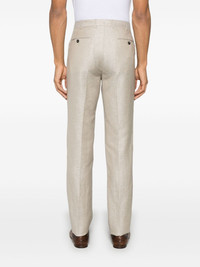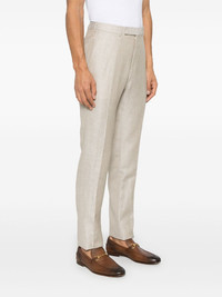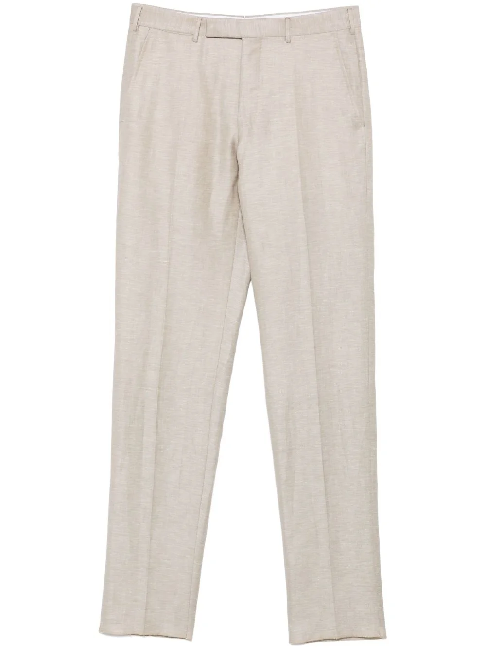 tapered trousers Highlights - Light beige - Concealed fly and button fastening - Belt loops - Two side slit pockets - Two rear button-fastening jetted pockets Imported Composition Outer: Wool 56%, Linen/Flax 44% Lining: Viscose 100%, Cotton 100% SIZE & FIT Model measurements Height 6 ft 2 in(1.87 m) Bust/Chest 38.18 in(97 cm) Hips 36.61 in(93 cm) Waist 29.13 in(74 cm) FittingInformation Designed for a slim fit, offering a comfortable fit that sits just away from the leg The unfinished hems allow for the length to be altered Made from a lightweight non-stretch fabric