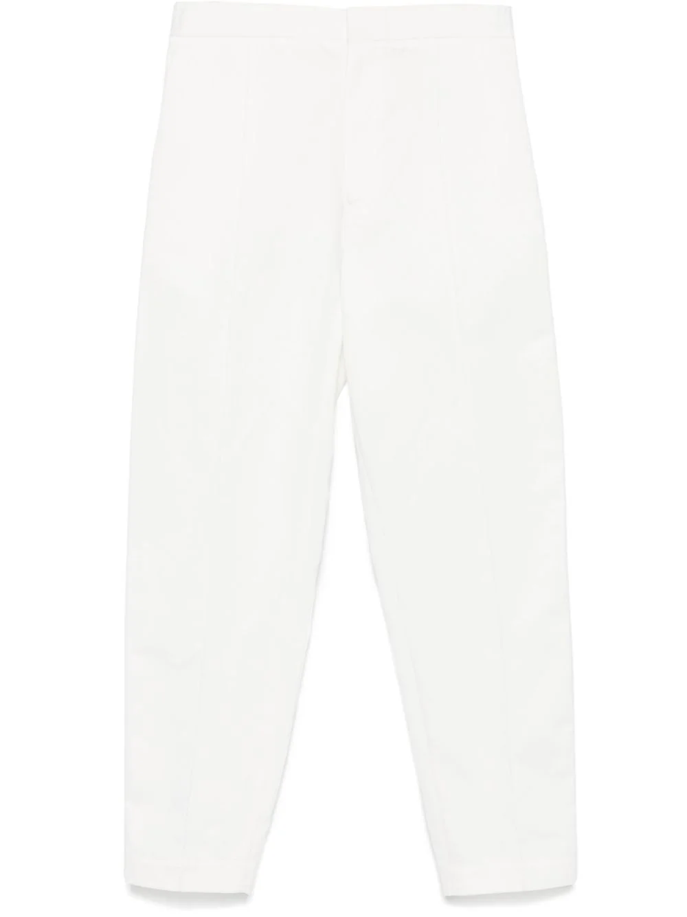tapered trousers Highlights - White - Front button and zip fastening - Rear elasticated waistband - Two diagonal pockets to the sides - Two rear welt pockets Imported Composition Outer: Cotton 77%, Linen/Flax 19%, Silk 4% Lining: Cotton 100% SIZE & FIT Model measurements Height 6 ft 0 in(1.84 m) Bust/Chest 35.82 in(91 cm) Hips 37 in(94 cm) Waist 28.34 in(72 cm) FittingInformation Designed for a tapered leg, offering a loose unrestricted fit over the leg with a closer fit towards the ankle The partially elasticated waistband offers increased movement and comfort at the waist Made from a midweight non-stretch fabric