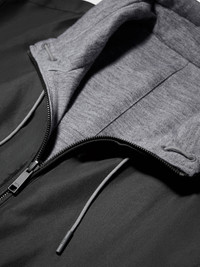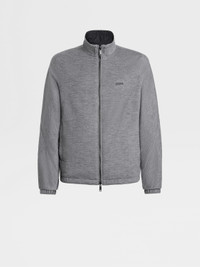 The black and grey technical fabric reversible Brezza blouson is lightweight and versatile. INFO The black and grey technical fabric reversible Brezza blouson combines sleek, urban style with functional design. Choose between the microfiber and cashmere blend jersey sides to complement different looks. The water-repellent jacket is styled with a stand collar and adjustable hem to block out the wind, while leather details add polish wherever you go. PRODUCT CODE E7T33-7124B-001 MATERIALS AND CARE Main body: 100% Polyester Leather details: Calfskin Do not wash. Do not bleach. Do not tumble dry. Iron at max 110°C. Professional dry cleaning in hydrocarbons, mild process. Professional leather clean only. Protect leather details before washing. Protect metal accessories during washing. FIT AND PRODUCT DETAILS • Side A: microfiber • Side B: cashmere blend jersey • Regular fit • Stand collar • Zip closure • Adjustable hem • Elasticated cuffs • Zegna Logo • Leather drawstring • Welt pockets • Water-repellent • 66 cm length on size 48