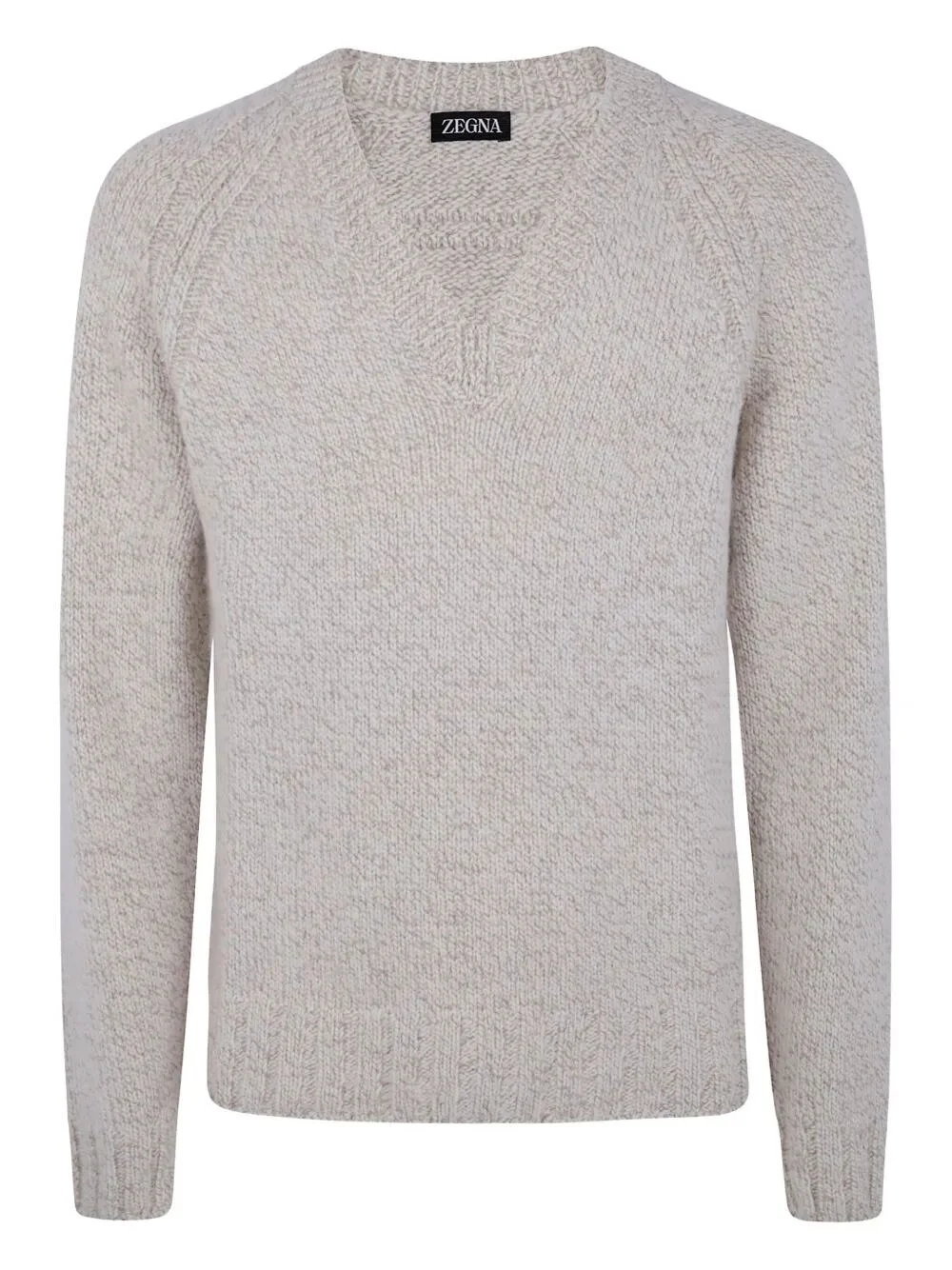 The 'CASHMERE AND WOOL V NECK' by ZEGNA epitomizes luxury in the sweater category. Crafted from a sumptuous blend of 86% cashmere and 14% wool, this piece in a timeless beige hue offers unparalleled softness and warmth. Made in Italy, it showcases exquisite craftsmanship. Pair it with tailored trousers for an elegant office look or wear it casually with jeans for a relaxed weekend outing. Its refined V-neck design and unique detailing elevate any outfit, making it a versatile addition to your wardrobe. Embrace the sophistication and comfort of this exclusive item, a true testament to artisanal quality. Product code: UGB30A2.300 272 NATURAL