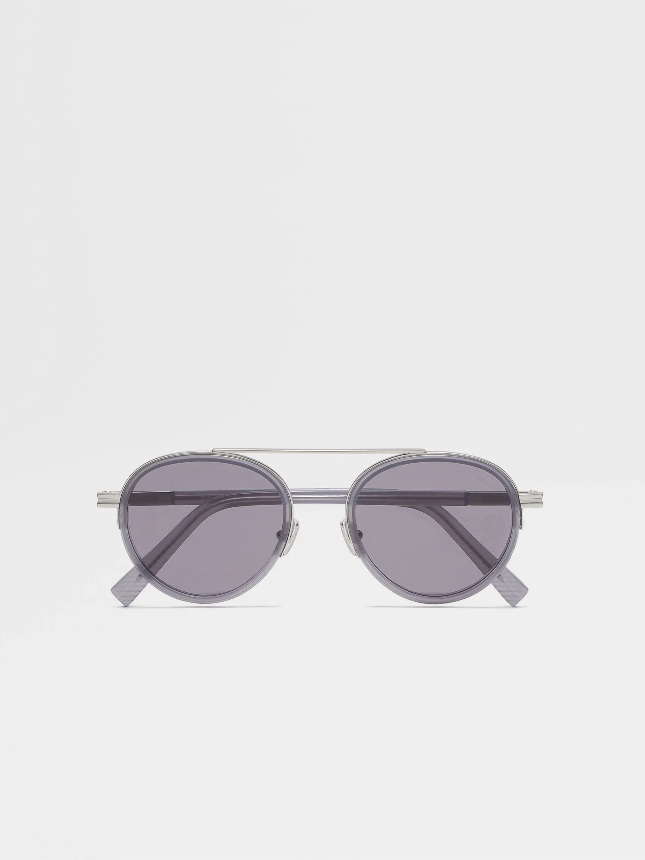 Round lenses and a brow bar give the opal grey Orizzonte II acetate and metal sunglasses their unique look. INFO The straight brow bar seems to float over the opal grey Orizzonte II acetate and metal sunglasses' round lenses. The shiny acetate frame is fitted with light grey lenses, complementing the minimalist design with a monochrome palette. The temples are accentuated with the Zegna 232 Road Brand Mark and grip inserts at the tips. The inspiration for the Orizzonte II, Orizzonte the Italian word for Horizon, Sunglasses was Born in Oasi Zegna, the home of our values in the Italian Alps. Shaped to a contemporary unbridged silhouette, the Orizzonte II sunglasses are accented with our iconic 232 Road Brand Mark and Zegna Logo, then finessed with a slender brow bar that draws from the panoramic mountain-top views in our 100km² natural territory. PRODUCT CODE EZ0242-5120A MATERIALS AND CARE Acetate; Metal Clean your eyewear using a soft cloth, preferably microfiber, with water or a mild detergent. To avoid scratching the lenses, never use paper towels or clothing to clean your eyewear. Do not use household detergents or soaps to clean your eyewear; these products will damage the lenses over time. FIT AND PRODUCT DETAILS • Lens 51 mm – Bridge 21 mm – Temple 145 mm • Base 2 • Acetate finishing: shiny • Metal finishing: matte • Suitable for mounting prescription lenses • Single bridge • Zegna Logo on the lens • Laser-inscribed Zegna Logo on the inside of the right temple • Zegna 232 Road Brand Mark on the temples