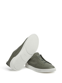 Triple Stitch leather sneakers Triple Stitch⢠low top sneakers from Zegna featuring olive green, calf leather, branded leather insole, round toe, front lace-up fastening and flat rubber sole. Imported Composition Lining: Calf Leather 100% Sole: Rubber 100% Outer: Calf Leather 100%