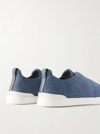 Triple Stitch Leather-Trimmed Canvas Sneakers