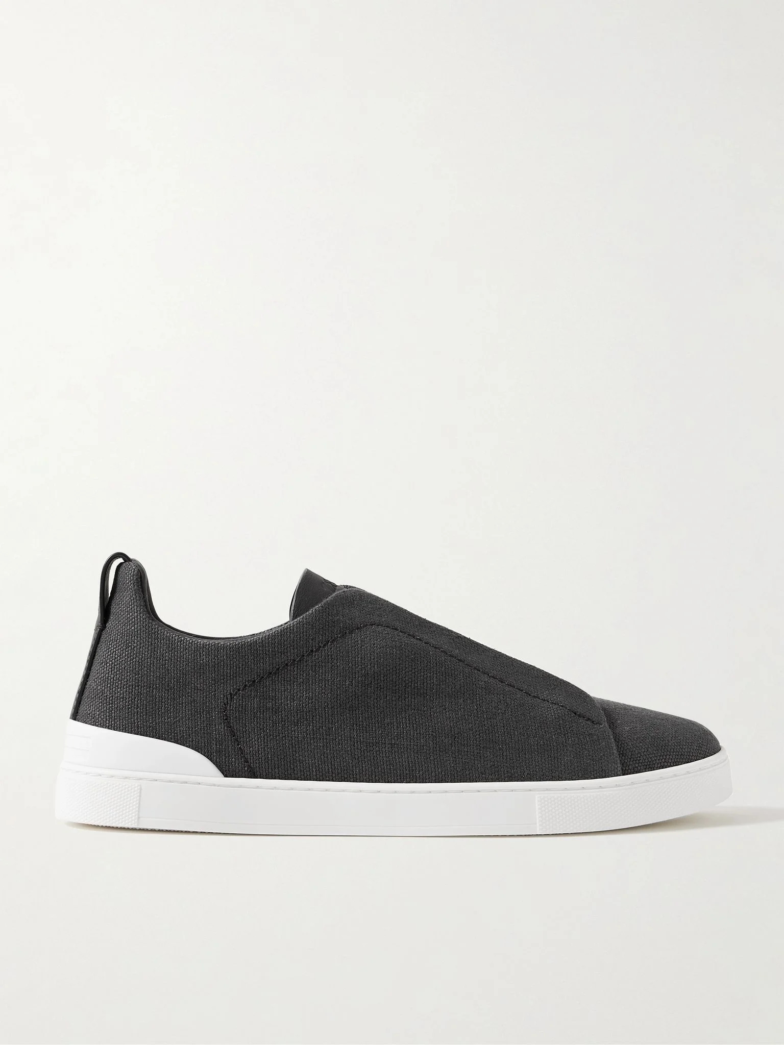 ZEGNA's sneakers are well-made and versatile. Crafted in Italy with linen-canvas uppers and leather trims, they're detailed with signature 'Triple Stitch™' embossing along the heels and fitted with elasticated laces for easy on and off. Size & Fit - Fits true to size. Take your normal size - UK sizing Details & Care - Charcoal canvas and leather (Cow) - Style number: LHLNA S7981Z