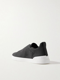 Triple Stitch™ Leather-Trimmed Linen-Canvas Slip-On Sneakers Gray