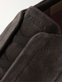 ZEGNA's sneakers are well-made and versatile, so you'll be able to wear them often. Made in Italy with tactile suede uppers, they're fitted with elasticated inserts so they're easy to get on and off and detailed with signature 'Triple Stitch' embossing along the heels. Size & Fit - Fits true to size. Take your normal size - UK sizing Details & Care - Dark-brown suede (Calf) - Come with dust bags - Style number: LHSOY S4667Z