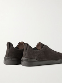 ZEGNA's sneakers are well-made and versatile, so you'll be able to wear them often. Made in Italy with tactile suede uppers, they're fitted with elasticated inserts so they're easy to get on and off and detailed with signature 'Triple Stitch™' embossing along the heels. Size & Fit - Fits true to size. Take your normal size - UK sizing Details & Care - Dark-brown suede (Calf) - Come with dust bags - Style number: LHSOY S4667Z