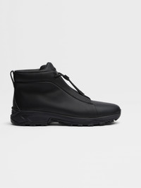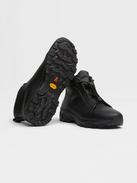 Explore new terrain with the black leather Triple Stitch™ Vetta sneakers. INFO Inspired by the trails of Oasi Zegna, the black leather Triple Stitch™ Vetta shoes are a hybrid of hiking and sporting styles. An evolution of the iconic Triple Stitch™ Luxury Leisurewear shoes, their signature, triple-crossed look is inspired by the handmade stitches found on our jackets. The smooth leather sneakers are equipped with an adjustable drawstring at the ankle and mounted on a Vibram® Arctic Grip™ sole — providing increased traction for outdoor pursuits. VETTA ('vet:a) — ITALIAN FOR 'PEAK' Inspired by the trails of Oasi Zegna, the Triple Stitch™ Vetta Shoes hybridise hiking and sporting styles. An evolution of the iconic Triple Stitch™ Luxury Leisurewear Shoe, they're hallmarked with a trio of crosses that are inspired by the handmade stitches found on our Jackets, then set on a Vibram® Arctic Grip™ sole — providing increased traction for outdoor pursuits. PRODUCT CODE LHMON-S5835Z-NEE MATERIALS AND CARE Calf Leather Clean with a soft cloth. Avoid contact with abrasives, water and substances containing alcohol, such as perfumes, solvents, etc. In case of contact with water, it is important to let the footwear dry completely before cleaning. Clean the rubber soles with a product specifically designed for cleaning rubber. Store in the included dust bag in a cool, dry place. To preserve the quality of your Triple Stitch™ Vetta, we recommend using our exclusive Care Kit. FIT AND PRODUCT DETAILS • Crossed elastics • Adjustable drawstring at the ankle • Functional loop on the back • Foliage-colored leather lining • Black Vibram® Arctic Grip™ sole • Zegna 232 Road Brand Mark on the heel tab • Sanitized® removable footbed • Made in Italy • Comes with a shoe bag We want every pair of Triple Stitch™ sneakers to fit perfectly anytime, anywhere, anyplace. To find your perfect fit, we recommend going down a half-size compared to your usual shoe size. Please note that Zegna uses UK sizing. For further information, please contact us via our customer service channels or by visiting the nearest Zegna flagship store.