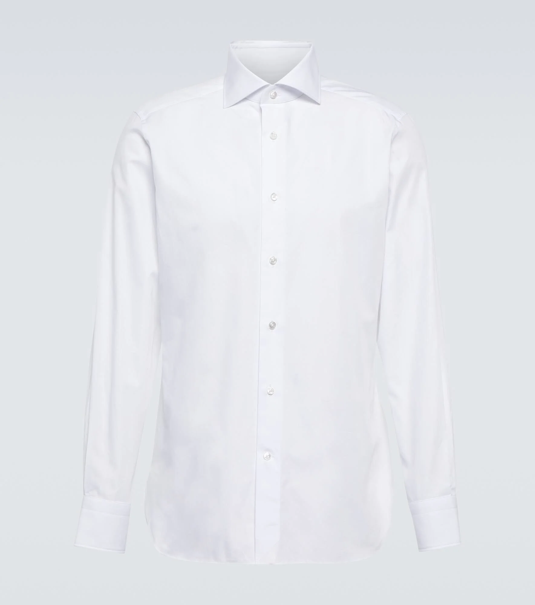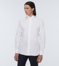 The Trofeo shirt from Zegna is made in Italy from pure cotton poplin in a wrinkle-resistant fabrication. The full-sleeved silhouette has a spread collar and buttoned cuffs. Product Details - Care instructions: machine wash at 40 degrees - Made in Italy - Material: 100% cotton - Designer color name: White - Pockets: buttoned pockets - Closure: buttoned front - Item number: P00828551 Size & Fit - True to size - Without pleats in the back - Slim fit - Mid-weight material - Falls to the hip - The model in the picture is 185cm-6'1" and wearing a size EU 39