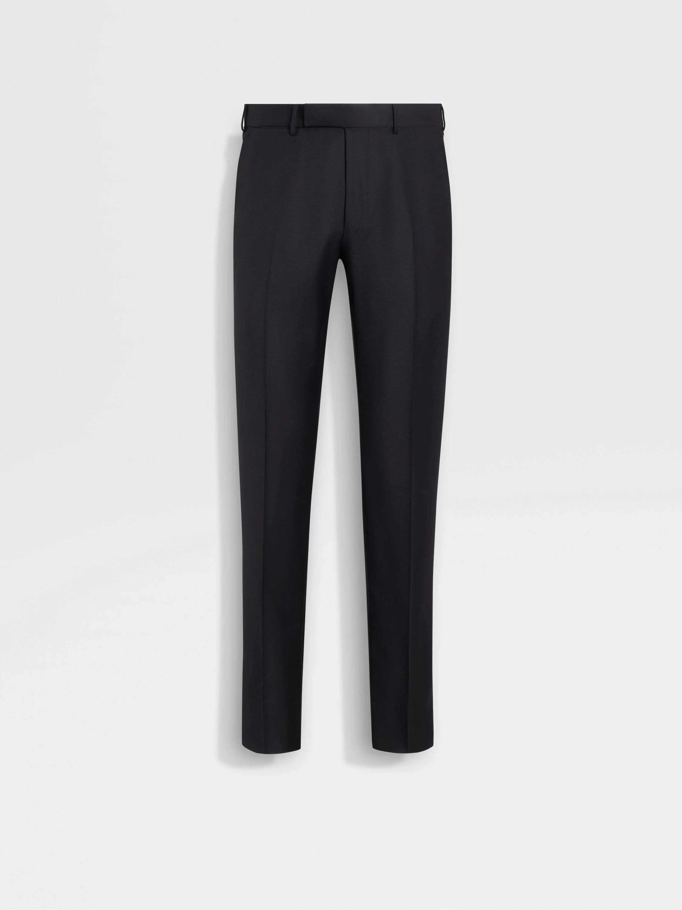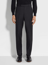 With their signature, smooth finish, the black Trofeo wool pants are a staple of elegant menswear. INFO Enjoy the superior comfort of the black Trofeo wool pants. Styled with contemporary, slim fit, their elongated silhouette is complemented by the distinctive finish of ZEGNA's proprietary, superfine merino wool, which stays beautifully smooth on busy days. PRODUCT CODE C19502-75TB12 MATERIALS AND CARE 100% Wool This garment is cut from Trofeo, a fabric crafted from super-fine Australian Merino wool that's naturally breathable and soft. The long fibres have an innate elasticity, resulting in comfortable garments with a smooth finish. Do not wash. Do not bleach. Do not tumble dry. Iron at max 110°C. Professional dry cleaning in tetrachloroethene and hydrocarbons, mild process. FIT AND PRODUCT DETAILS • Slim fit • Tailoring pants • 18.5 cm hem • Zip and button closure • Slanted pockets • Flat front style • Unlined • Model is 187 cm tall (6.1 feet) and wears an Italian size 48.