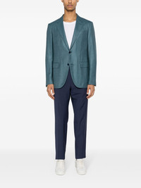 twill single-breasted blazer Highlights - Teal blue - Cashmere-silk blend - Twill weave - Melange effect - Notched lapels - Shoulder pads - Chest welt pocket - Long sleeves with buttoned cuffs - Dart detailing - Two side flap pockets - English rear vents - Multiple internal slip pockets - Partial lining - Straight hem - Front button fastening Imported Composition Outer: Cashmere 64%, Silk 23%, Linen/Flax 13% Lining: Cupro 100% SIZE & FIT Model measurements Height 6 ft 2 in(1.87 m) Bust/Chest 38.18 in(97 cm) Hips 36.61 in(93 cm) Waist 29.13 in(74 cm) FittingInformation Designed for a slim fit, offering a comfortable fit that sits just away from the body The vented hem offers movement at the rear Made from a midweight non-stretch fabric This piece fits true to size – take your usual size Washing instructions Dry Clean Only