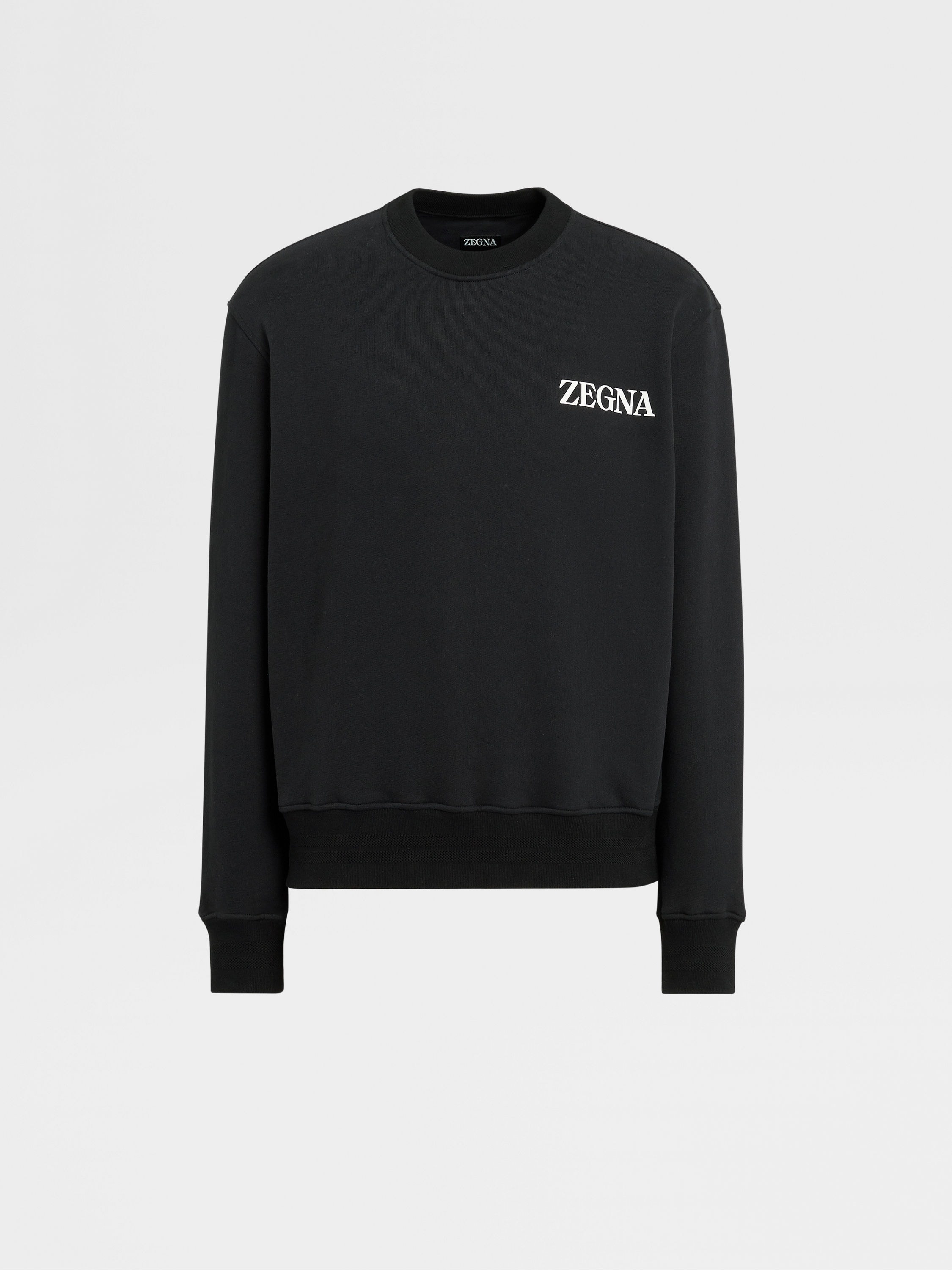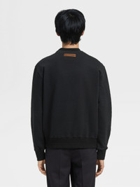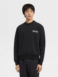 Choose sustainability with the black #UseTheExisting™ cotton crewneck sweatshirt. INFO Enjoy the unmistakable feel of pure cotton while taking a step for the environment: as part of Zegna's commitment towards zero-waste fashion, the black #UseTheExisting™ cotton crewneck sweatshirt includes upcycled materials recovered using innovative processes. Styled with the classic, ribbed trim, the Zegna Logo signs off the look. PRODUCT CODE UA522-ACT872-K09 MATERIALS AND CARE 100% Cotton This garment includes recovered materials which have been reused with innovative processes. This is #UseTheExisting™, making the dream of zero waste possible. Hand wash (30°C / 85°F). Do not bleach. Do not dry clean. Do not tumble dry. Dry flat. Regular ironing, steam or dry, may be performed at low setting (110°C / 230°F). FIT AND PRODUCT DETAILS • Regular Fit • Crewneck • Zegna Logo • Ribbed bottom and cuffs • Model is 188 cm tall (6.2 feet) and wears an Italian size 48.