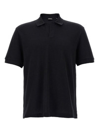 v-neck polo shirt Highlights - Black - Front button placket - Short sleeves - Straight hem Made in Italy Composition Cotton 70%, Cashmere 30%