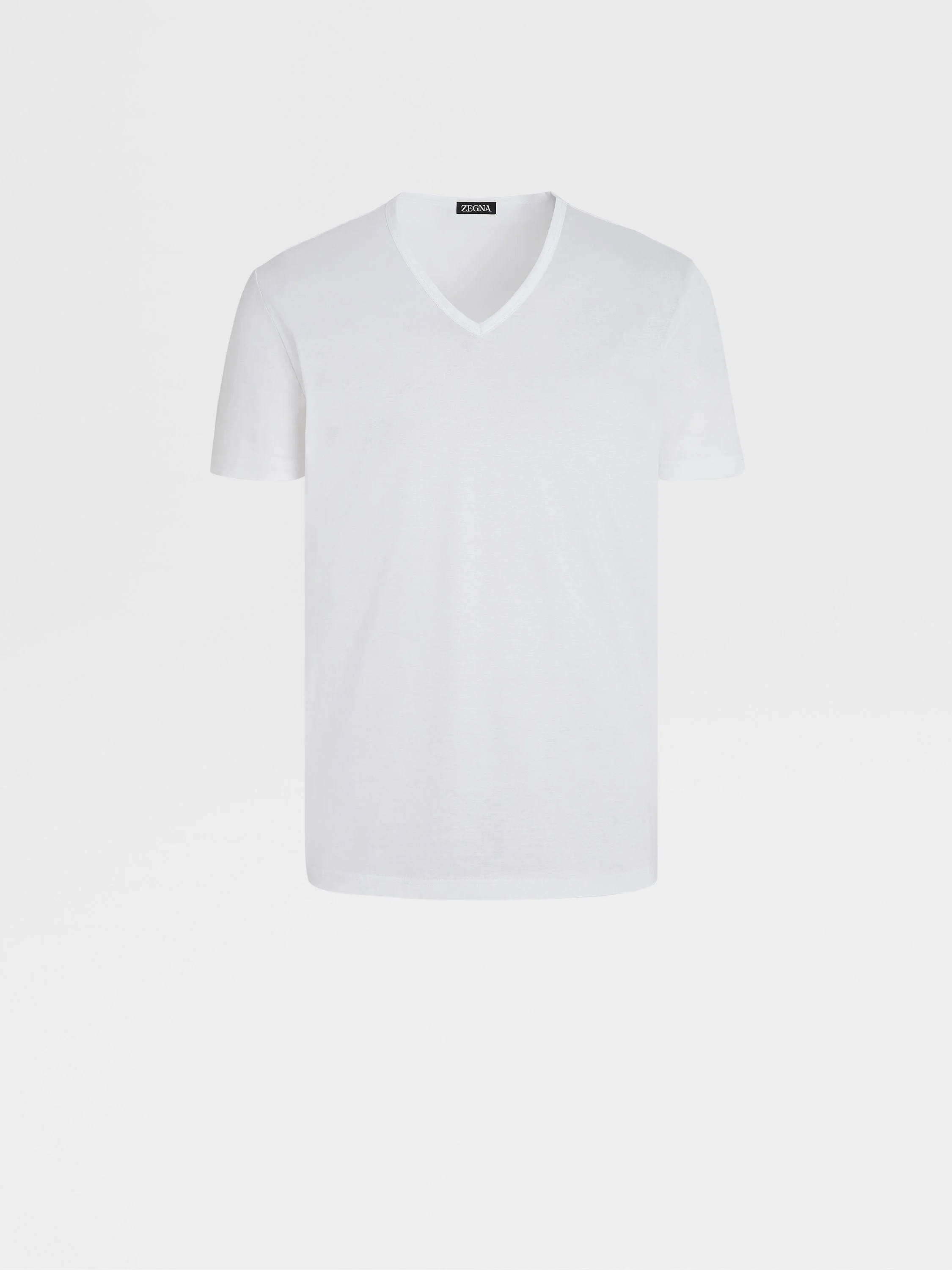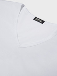 The white pure cotton V-neck T-shirt is made from high-quality Filoscozia cotton. INFO Premium natural fibers give the white pure cotton V-neck T-shirt its luxuriously soft and breathable feel. The essential T-shirt is topped off with a discreet, V-neck collar. PRODUCT CODE N2M80-011-100 MATERIALS AND CARE 100% Cotton Max washing temp 30°C, mild process. Do not bleach. Iron at max 110°C. Do not dry clean. Do not tumble dry. FIT AND PRODUCT DETAILS • Short sleeves • V-neck style • Fits true to size