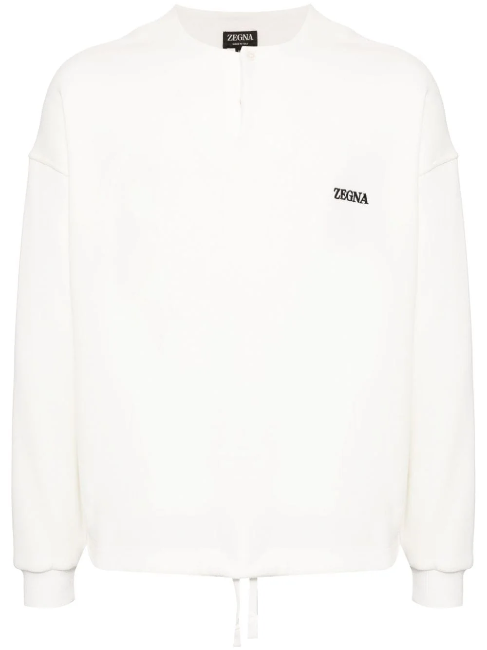 logo-embroidered cotton-blend sweatshirt Highlights - White - Cotton blend - Jersey texture - Embroidered logo at the chest - Crew neck - Short front button fastening - Long sleeves - Ribbed cuffs - Drawstring hem - Straight hem Made in Italy Composition Cotton 93%, Polyamide 7% SIZE & FIT Model measurements Height 6 ft 2 in(1.87 m) Bust/Chest 34.25 in(87 cm) Hips 36.22 in(92 cm) Waist 29.52 in(75 cm) FittingInformation Designed for a relaxed fit, this piece allows for comfort and movement when worn The adjustable drawstring means that you can adjust this piece’s fit to suit your comfort and preference Made from a midweight non-stretch fabric, this piece offers minimal elasticity when worn This piece fits true to size – take your usual size