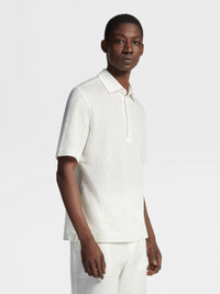 Refresh casual wardrobes with the white pure linen short-sleeve polo shirt. INFO The naturally breathable and lightweight material of the white pure linen short-sleeve polo shirt is the perfect choice for this essential style. The white polo shirt is styled with a self-fabric collar and the classic button placket. Folded cuffs highlight the quality of the material. PRODUCT CODE UC349A6-C770-N00 MATERIALS AND CARE 100% Linen Do not bleach. Do not tumble dry. Iron at max 110°C. Professional dry cleaning in hydrocarbons. Wash and iron inside out. FIT AND PRODUCT DETAILS • Short sleeves • Self fabric polo collar • Straight hem • Folded cuffs • Button placket closure • Regular fit • Model is 186 cm tall (6.1 feet) and wears an international size M.