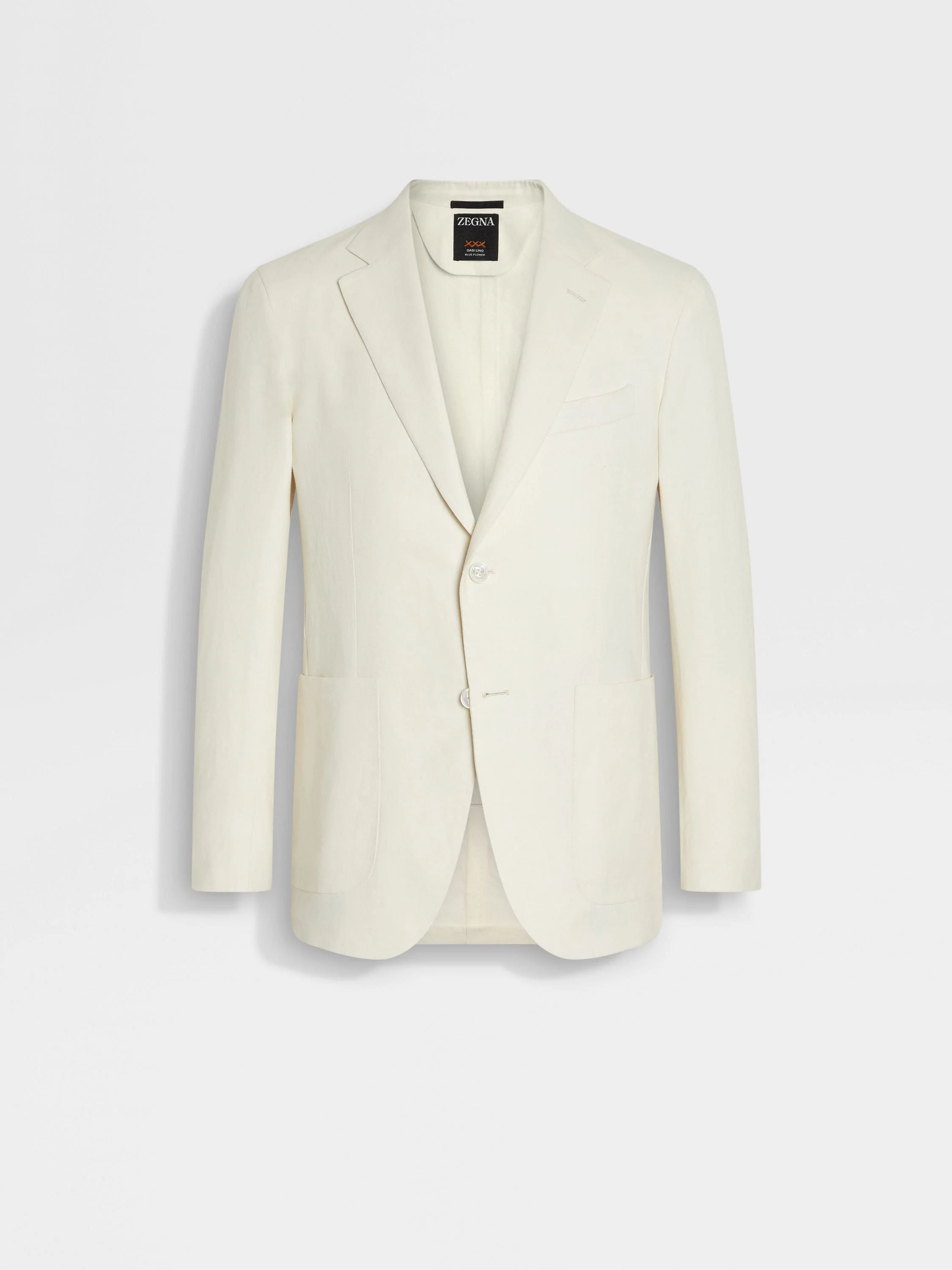 This white cardigan jacket is crafted from Zegna's Oasi Lino Blue Flower fabric. INFO This white cardigan jacket is an emblem of sartorial elegance, designed with polished notch lapels. The frosted finish and super-soft feel of our Oasi Lino Blue Flower fabric elevates the design. PRODUCT CODE 973N40A9-10JCN0 MATERIALS AND CARE 100% Linen Oasi Lino Blue Flower is inspired by the rare and short-lived blooms of the flax plant. It's crafted exclusively from exceptionally fine European linen, which imbue it with impeccable smoothness and a unique frosted appearance. Made exclusively from fibres that are 100% traceable from 2024, Oasi Lino follows in the footsteps of our founder, who envisioned a vertically integrated system of producing textiles. Do not wash. Do not bleach. Do not tumble dry. Professional dry cleaning in tetrachloroethene and hydrocarbons, mild process. FIT AND PRODUCT DETAILS • Regular fit • Tailoring jacket • Double vents • Notch lapel • Button closure • Patch pockets • Deconstructed, canvas • Unlined • 74 cm length on size 48 Sleeves hems are unfinished. You can bring your jacket to our boutiques for alterations.