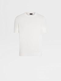 Specially selected fibers give the white Premium Cotton knit T-shirt its superior resilience. INFO The white Premium Cotton short-sleeve knit T-shirt is made from extra long, pure cotton fibers to maximize this material's natural qualities. As a result, the white T-shirt is bright and crisp, with a beautifully smooth finish. A boxy fit puts a contemporary twist on this everyday staple. PRODUCT CODE UBC90A5-C10-N01 MATERIALS AND CARE 100% Cotton Only long-staple fibres are used to create the Premium Cotton yarns of this garment, imbuing it with strength, softness and durability — ideal for bringing a luxurious feel to everyday looks. Hand wash (30°C / 85°F) or mild dry clean. Wash inside out. Do not bleach. Do not tumble dry. Dry flat. Regular ironing, steam or dry, may be performed at low setting (110°C / 230°F). FIT AND PRODUCT DETAILS • Round collar • Short sleeves • Tubular bottom and sleeve hems • Boxy fit • Model is 186 cm tall (6.1 feet) and wears an Italian size 48.