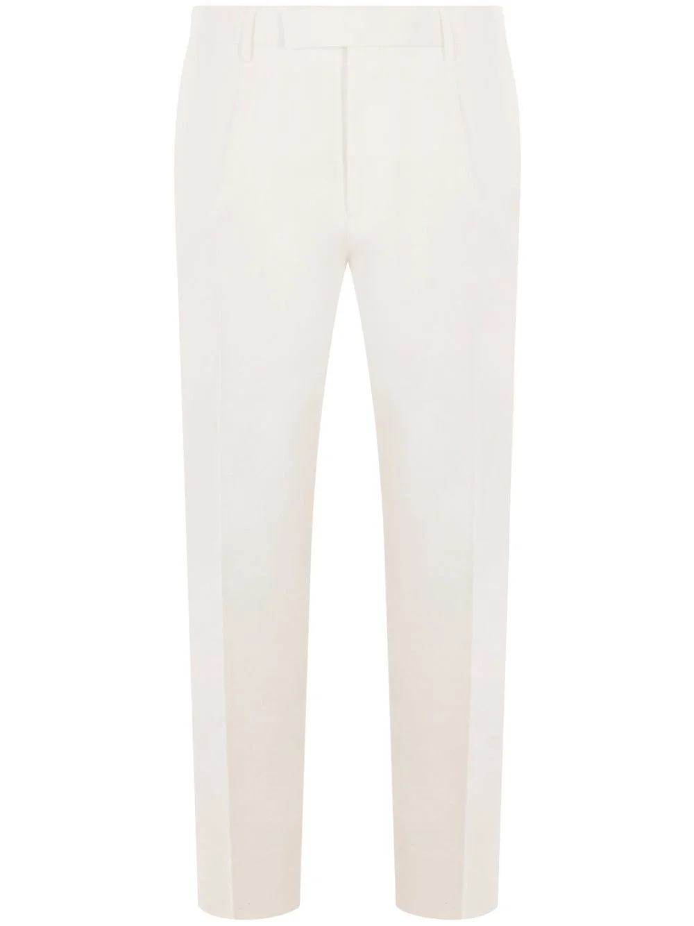 pleated gabardine trousers Highlights - White - Concealed front fastening - Two side slash pockets - Two rear welt pockets - Pressed crease Imported Composition Cotton 74%, Linen/Flax 26%