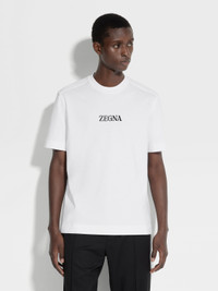 The white #UseTheExisting™ cotton T-shirt is the foundation of countless casual outfits. INFO Reflecting Zegna's commitment to zero-waste fashion, the white #UseTheExisting™ cotton T-shirt is made using sustainable upcycling processes. Folded cuffs give the pure cotton, short-sleeve T-shirt an extra boost of style. The Zegna Logo adds a final accent. PRODUCT CODE E7364-A777-N01 MATERIALS AND CARE 100% Cotton This garment is crafted from recovered materials that have been regenerated using innovative processes. This is #UseTheExisting™ — making the dream of zero waste possible. Wash by hand. Do not bleach. Do not tumble dry. Line drying in the shade. Iron at max 110°C. Professional dry cleaning in hydrocarbons. Wash and iron inside out. FIT AND PRODUCT DETAILS • Short sleeves • Knit crewneck collar • Folded hem and cuffs • Zegna Logo • Regular fit • Model is 187 cm tall (6.1 feet) and wears an international size M.
