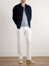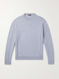 ZEGNA's wool sweater is blended with plenty of cashmere to enhance its soft handle. It's cleverly constructed from knitted panels and defined by uneven ribbed trims. Gently fold yours in between wears to retain its shape. Size & Fit - Fits true to size. Take your normal size - Designed for a slightly loose fit - Mid-weight knit - Model is shown wearing an IT 48 - Italian sizing Details & Care - Light-blue mélange wool and cashmere-blend - 70% wool, 30% cashmere - Hand wash