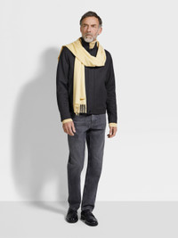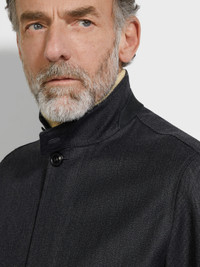 Sporty meets chic with this dark grey blouson, crafted from refined melange wool. INFO A stand collar, shirt cuffs and a water-repellent finish: this dark grey melange wool blouson marries practicality with style to perfection. Enriched with leather accents and a concealed closure for a sleek, streamlined look. PRODUCT CODE UGT26A2-G154-K98 MATERIALS AND CARE Main body: 100% Wool Leather details: Calfskin Lining: 100% Wool Do not wash. Do not bleach. Do not tumble dry. Iron at max 110°C. Professional dry cleaning in hydrocarbons, mild process. FIT AND PRODUCT DETAILS • Regular fit • Stand collar • Concealed zip and button closure • Regular hem with half-elasticated sides • Shirt cuffs • Leather details • Slanted side pockets • Water repellent • 66 cm length on size 48