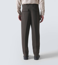 Product Details - Material: 100% wool - Care instructions: dry clean - Made in Romania - Designer color name: Dark Brown - Lining: 100% cotton - Contains non-textile parts of animal origin - Closure: zipper fly, button and hook fastenings - Pockets: side slit pockets, back pockets - Belt loops - Item number: P00953251 Size & Fit - True to size - Non-stretchy fabric - Straight leg - The model in the picture is 185cm-6'1" and wearing a size 48