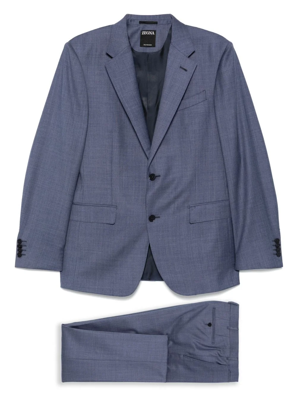 wool suit Highlights - Imperial blue - Front button fastening - Hook and zip fly fastening - English rear vents - Belt loops Imported Composition Lining: Cupro 100%, Viscose 100%, Modal 50%, Cotton 50% Outer: Wool 100%
