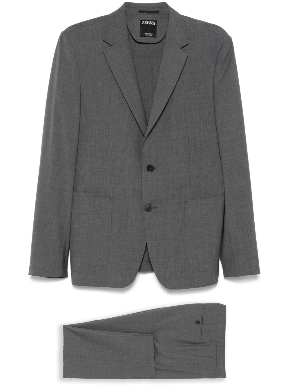 wool suit Highlights - Medium grey - Front button fastening - Concealed front button, hook and zip fastening - English rear vents - Two side slash pockets Imported Composition Outer: Wool 100% Lining: Polyester 100% SIZE & FIT Model measurements Height 6 ft 2 in(1.87 m) Bust/Chest 37.79 in(96 cm) Hips 37.79 in(96 cm) Waist 30.31 in(77 cm) FittingInformation Tailored for a slim fit, offering a comfortable fit that sits just away from the body The unfinished hems allow for the length to be altered Made from a midweight non-stretch fabric