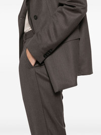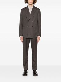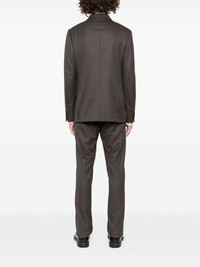 wool suit Highlights - Cedar brown - Front button fastening - Two side slash pockets - Two side flap pockets - Two rear jetted pockets Made in Italy Composition Lining: Cupro 100% Outer: Wool 100% SIZE & FIT Model measurements Height 6 ft 1 in(1.86 m) Bust/Chest 33.46 in(85 cm) Hips 35.43 in(90 cm) Waist 31.1 in(79 cm) FittingInformation Tailored for a regular fit, offering a comfortable loose fit throughout the body The unfinished hems allow for the length to be altered Made from a midweight non-stretch fabric