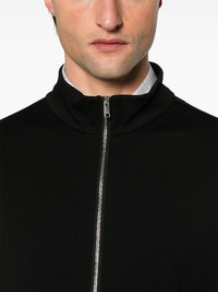wool sweatshirt Highlights - Black - Front two-way zip fastening - High neck - Long sleeves - Two side slit pockets Imported Composition Wool 100%, Calf Leather 100% SIZE & FIT Model measurements Height 6 ft 2 in(1.87 m) Bust/Chest 37.79 in(96 cm) Hips 37.79 in(96 cm) Waist 30.31 in(77 cm) FittingInformation Designed for a regular fit, offering a comfortable loose fit throughout the body Made from a midweight non-stretch fabric, this piece offers minimal elasticity when worn