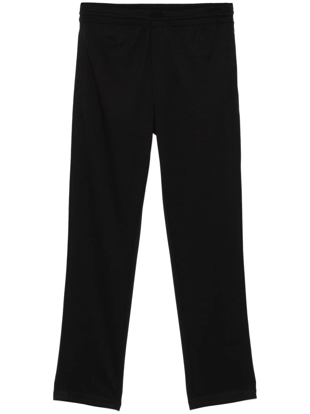 wool track trousers Highlights - Black - Elasticated waistband with internal drawstring - Two press-stud fastening side pockets - Rear welt pocket Imported Composition Wool 100% SIZE & FIT Model measurements Height 6 ft 2 in(1.87 m) Bust/Chest 37.79 in(96 cm) Hips 37.79 in(96 cm) Waist 30.31 in(77 cm) FittingInformation Designed for a slim fit, offering a comfortable fit that sits just away from the leg The elasticated waist allows for a comfortable fit Made from a midweight non-stretch fabric, this piece offers minimal elasticity when worn