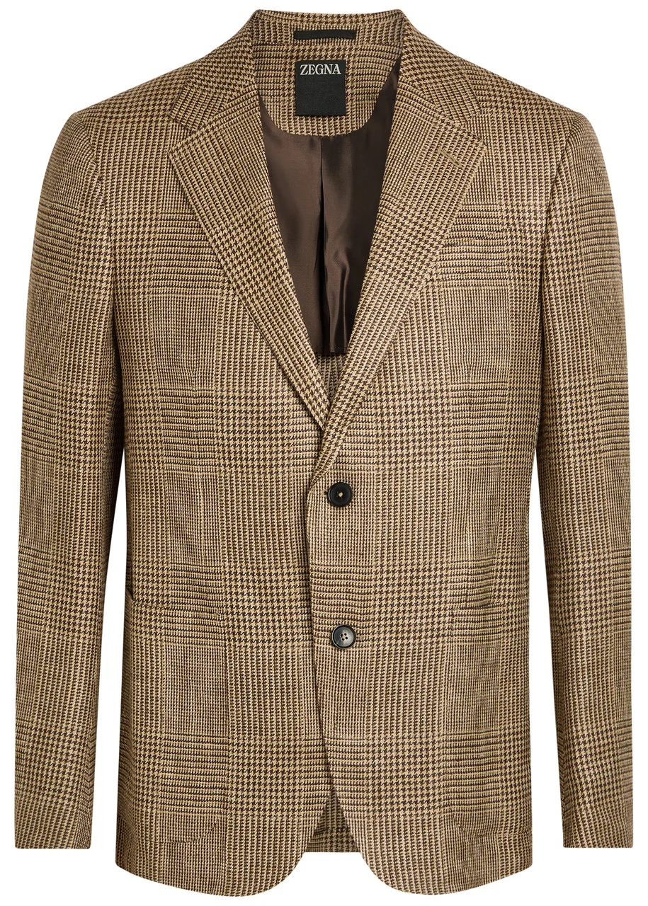 Info & Care Zegna woven blazer Houndstooth, notched lapels, padded shoulders, faux button-fastening cuffs, chest welt pocket, front patch pockets, two back vents, two internal slip pockets, partially lined Button fastenings at front 37% silk, 37% linen, 26% wool Dry clean; Size & Fit Length shoulder to hem: 29 inches/ 73.5cm Midweight Regular fit Model is 6'1"/ 185cm, chest size 38 inches and wears a size;IT50