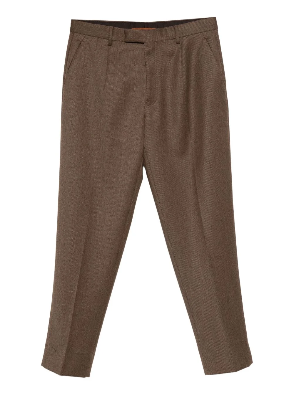 tailored wool trousers Highlights - Brown - Wool - Belt loops - Concealed front fastening - Side pockets - Rear jetted pockets Made in Italy Composition Wool 100% SIZE & FIT Model measurements Height 6 ft 1 in(1.85 m) Bust/Chest 38.58 in(98 cm) Hips 37 in(94 cm) Waist 30.31 in(77 cm) Washing instructions Read Manufacturer Guidelines