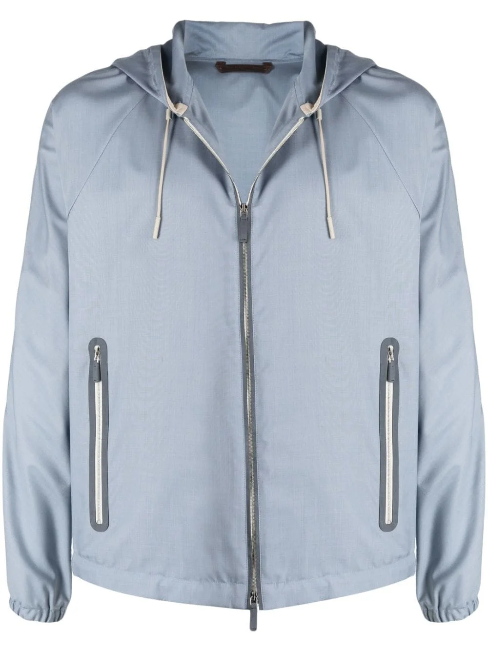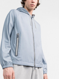 zip-front shell jacket Crafted for performance as well as style, this jacket from Ermenegildo Zegna boasts a lightweight finish. The blue design is made from a soft blend of wool and silk for an elegant appeal. Imported Composition Outer: Calf Leather 100%, Wool 51%, Silk 49% Lining: Wool 51%, Silk 49% SIZE & FIT Model measurements Height 6 ft 2 in(1.88 m) Bust/Chest 37.79 in(96 cm) Hips 36.22 in(92 cm) Waist 31.1 in(79 cm) Washing instructions Machine Wash