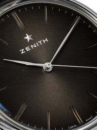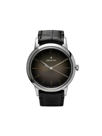 Elite Classic 39mm Characterised by refined elegance, immaculate precision and timeless design, Zenith’s Elite Collection is home to the legendary 679 automatic mechanical movement that bears the same name. The Elite Classic 39mm is a traditional timepiece that remains faithful to the Zenith legacy, with 126 components, 27 jewels and a calibre beating at 28,800 VpH. Made in Switzerland with an ultra-thin stainless steel case, the watch has a 50-hour power reserve, a 5 ATM water resistance, a black-toned dial, a domed sapphire crystal face with anti-reflective treatment and a black alligator leather strap with a steel pin buckle and a rubber lining for longevity. Functions include central hours, minutes and seconds hands that are leaf-shaped and rhodium-plated, as well as index hour markers that offer a sophisticated finish. This item comes with a standard 2-year international warranty from the brand. Imported Composition Outer: stainless steel 100%, Rubber 100%, Alligator Leather 100%, Steel 100% SIZE & FIT Model measurements Height 6 ft 1 in(1.85 m) Bust/Chest 37.79 in(96 cm) Hips 37.4 in(95 cm) Waist 30.7 in(78 cm) Measurement Strap width 0.78 in(20 mm) Minimum strap length 7.08 in(18 cm) Case thickness 0.35 in(9 mm) Maximum strap length 8.85 in(22.5 cm) Case size 1.53 in(39 mm)